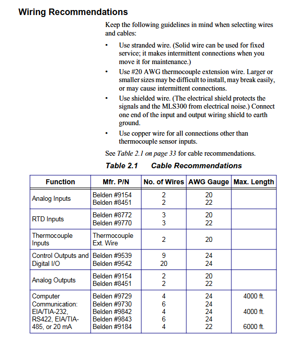 Sensor cable thermocouple: 20AWG thermocouple extension wire; RTD: 22AWG shielded twisted pair cable; Linear signal: 22AWG shielded twisted pair cable should be kept away from high-voltage cables (≥ 10cm), and the shielding layer should be grounded at one end (processor end); RTD cable length ≤ 100m