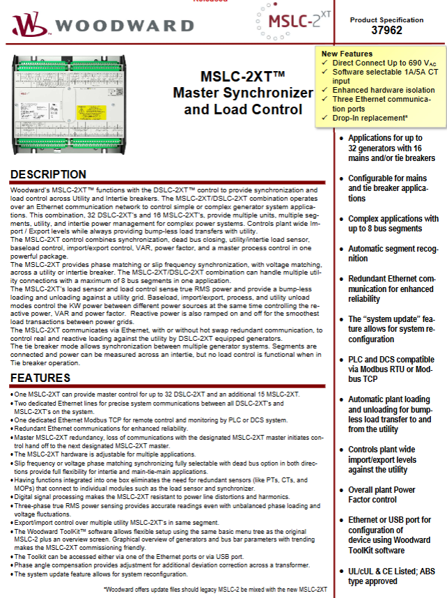 Alternative compatibility can directly replace the old version MSLC-2, supporting mixed use of old and new devices (Woodward update file required)