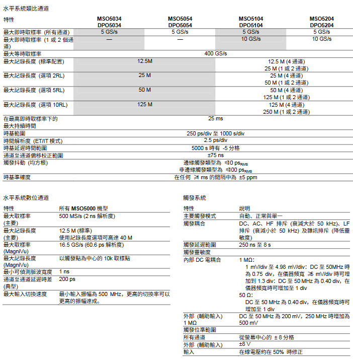 MSO5204/DPO5204 2GHz 10GS/s 5GS/s 12.5M