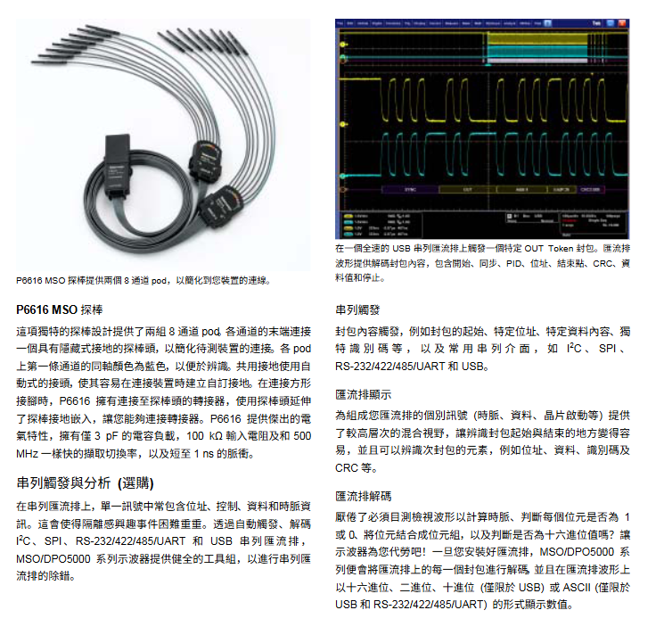 Digital channel (MSO series): 16 sets of inputs, critical values support TTL/ECL/custom (± 40V), input impedance 100k Ω, probe load 3pF, MagniVu mode sampling rate 16.5GS/s (60.6ps resolution)