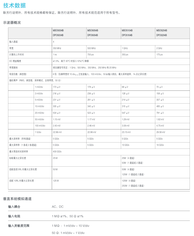 DPO5504B 4 Analog 500MHz 2.5GS/s/5GS/s No selectable high-speed analog signal (such as 500MHz clock)