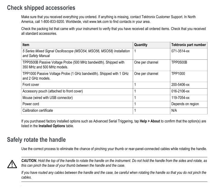 Accessory Name Quantity Specification/Purpose Tektronix Model