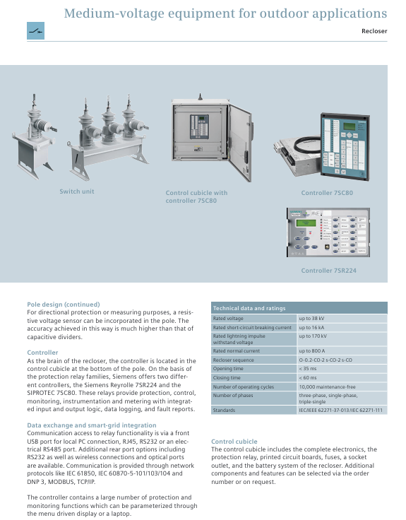 Controller: Provides 7SR224 (Reyrolle series) and 7SC80 (SIPROTEC series), supports communication protocols such as IEC 61850 and MODBUS, and is compatible with smart grids.