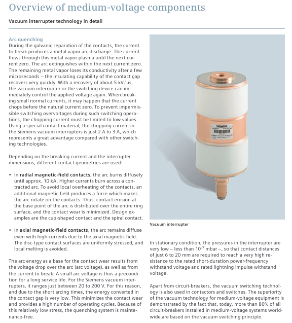 Radial magnetic field contact cup-shaped/spiral structure, generating radial magnetic field ≤ 10kA (diffusion arc); >10kA (contraction arc, arc rotation) universal circuit breaker (3AH5) to avoid local overheating and uniform wear of contacts