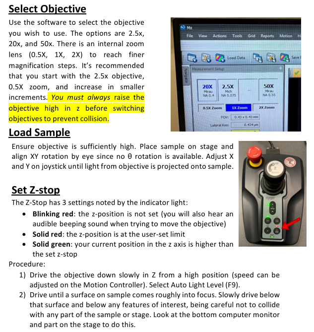 Before switching the objective lens, it must be raised to the highest position along the Z-axis to prevent collision with the sample.