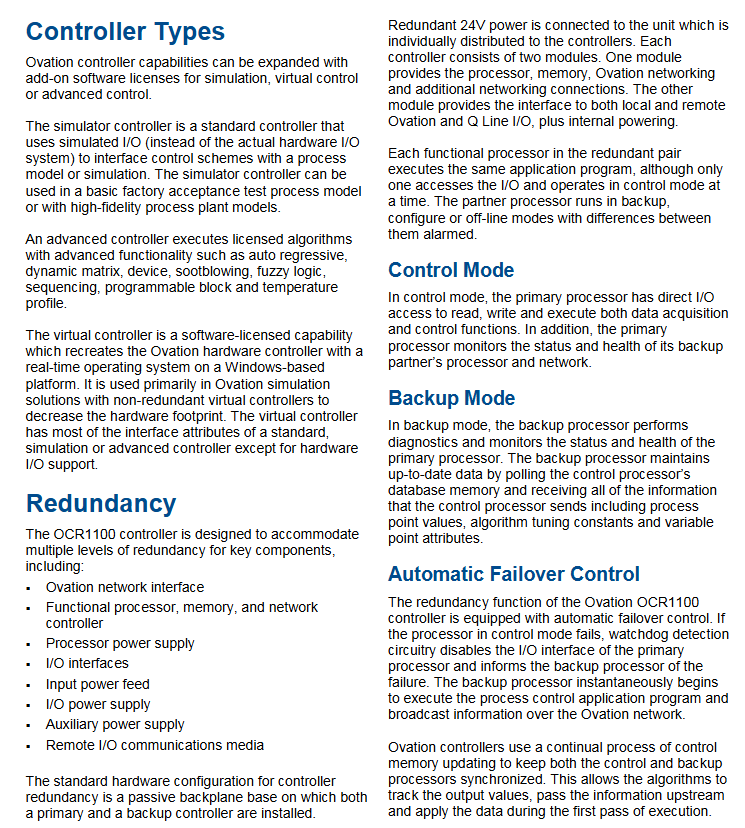 Hardware compatibility: Shared packaging design with the previous generation OCR400, supports backward compatibility, can upgrade old model control logic and database through migration program (requires Ovation 3.5 and above system support)