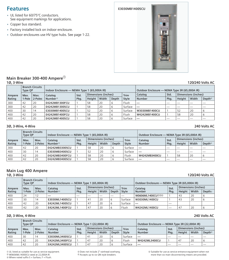 P3040B1200CU 200A 30/40 NEMA 3R 35 × 14.5 × 4.25 Outdoor Commercial Distribution