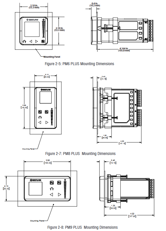 Installation size: 1/16 DIN (PM6), 1/8 DIN vertical (PM8), 1/8 DIN horizontal (PM9). Different panel space requirements, 1/16 DIN is suitable for compact scenarios, and 1/8 DIN is suitable for multi parameter display requirements