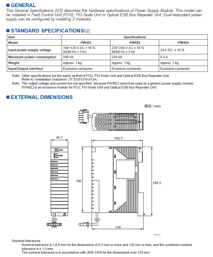 Product positioning: This series of modules is an exclusive power module and cannot be used as a universal power supply. It is only compatible with the control units and relay units specified by Yokogawa.