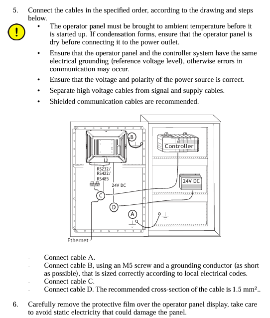 Ensure that the operation panel and controller system have the same electrical grounding (reference voltage level), otherwise communication errors may occur.