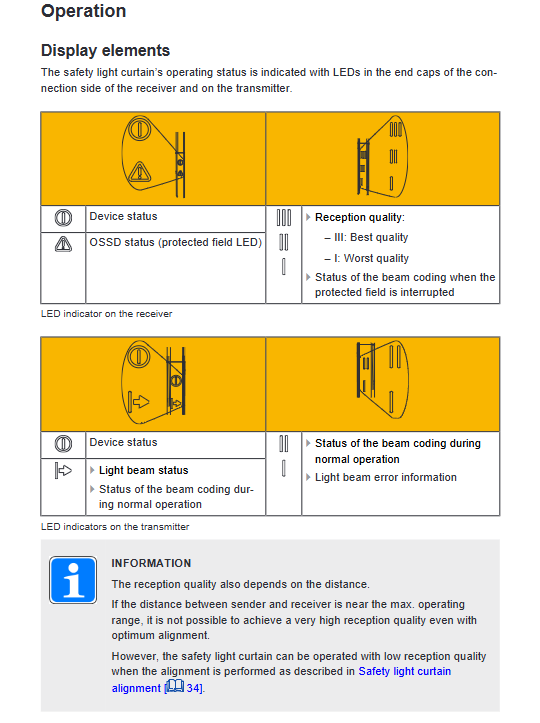 Auto start/restart: automatically activated when the protected area is unobstructed after power on (OSSD output ON); After the obstruction is removed, it will automatically restart after ≥ 80ms without manual operation.
