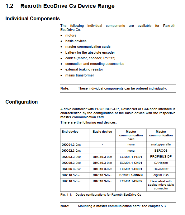 Bus type (DKC03.3/05.3/06.3): Supports PROFIBUS DP, CANopen, and DeviceNet respectively.