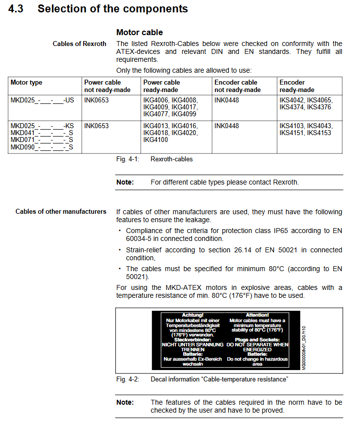 Prohibition of mixing controllers: Only compatible with dedicated controllers such as Rexroth DIAX04 and ECODRIVE are allowed.