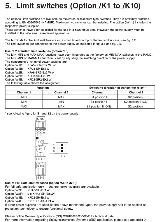 Standard type (/K1-/K3): Supports MAX/MIN dual contacts and complies with EN 60947-5-6 (NAMUR) standard;