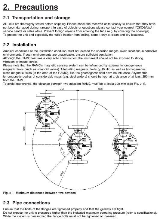 For models with a nominal diameter greater than RAMC08, it is necessary to reserve a straight pipe section for the first 5 times the nominal diameter and a straight pipe section for the last 3 times the nominal diameter;