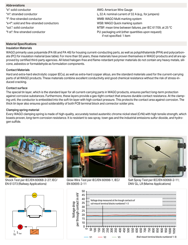 Voltage reducing jumper: Achieve common potential for different cross-sectional terminal blocks (such as 35mm ² and 4mm ²), such as 283-414 (16mm ² to 4mm ²).