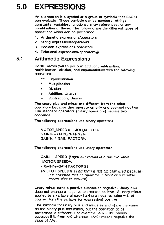 |Single precision integer |% | -32768~+32767 | 16 bit storage, automatic truncation of decimals|