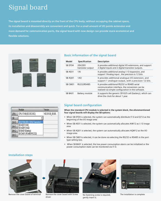 3.1 Signal board (SB): directly installed on the front of the CPU without occupying cabinet space