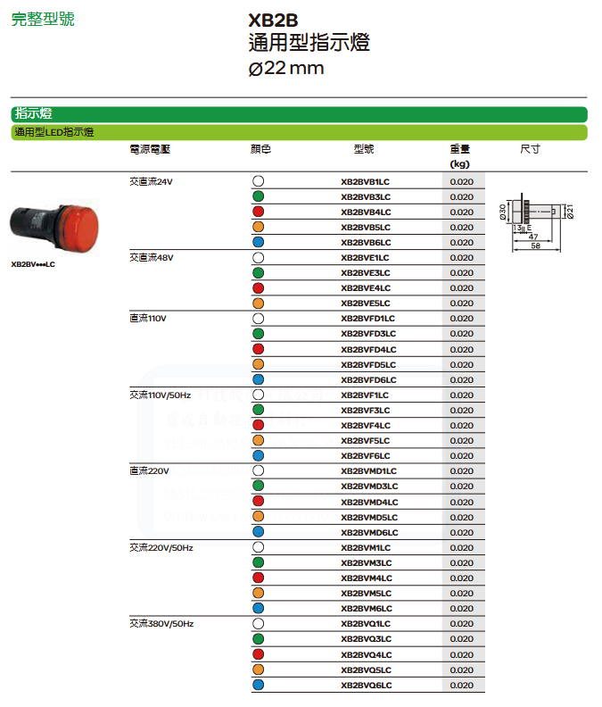 DC 220V XB2BVMD * LC multi-color 0.020