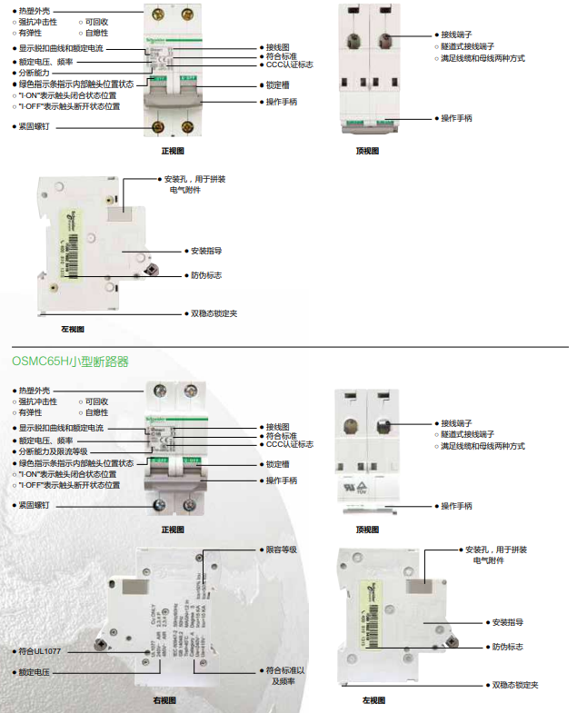 Main models: OSMC32N (breaking capacity 6kA), OSMC65H (breaking capacity 10kA), K series (breaking capacity 4.5-6kA)