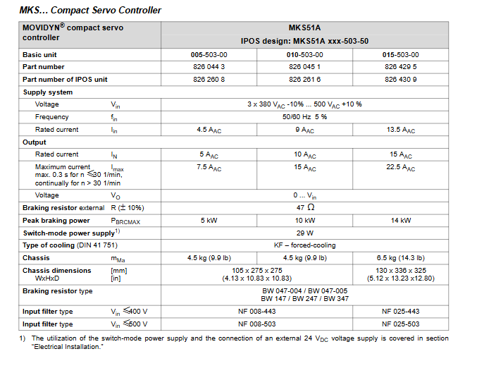 MOVIDYN ® The servo controller is an industrial grade servo drive device launched by SEW-EURODRIVE, designed specifically for permanent magnet synchronous AC servo motors. It covers three core products: power module (MPB/MPR), shaft module (MAS), and compact controller (MKS). It supports 380-500V three-phase power input, rated current of 5-60A, power of 11-55kW, and has speed/torque/position control functions. It has passed EMC, UL and other certifications and is suitable for high-precision control scenarios such as machine tools and automated production lines. It also has complete safety protection and fault diagnosis capabilities.