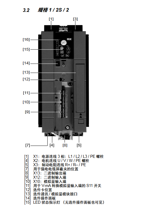 MOVITRAC ® The B frequency converter is a drive control device launched by SEW-EURODRIVE, suitable for various motors. It complies with multiple international standards such as CE and UL, and provides various specifications from 0XS/0S/0L to 4/5. It is compatible with 230V (1-phase/3-phase) and 400/500V (3-phase) power supplies, with a power coverage of 0.25kW~75kW. The device supports multiple operation modes such as V/f and VFC, and can be operated through the FBG11B/DBG60B control panel MOVITOOLS ® MotionStudio software or external terminals are used for debugging and operation, with comprehensive safety protection, fault diagnosis, and data communication functions. It can be flexibly expanded with options such as FSC11B communication module and FIO11B analog module, and is widely used for motor drive control in scenarios such as pumps, fans, and industrial machinery.