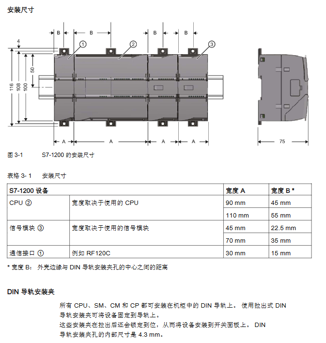 Installation position: Adjacent to the left side of S7-1200, with a ventilation gap of 25mm above and below