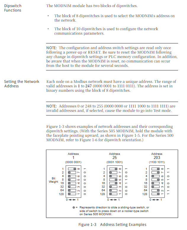 Network addresses 1-247 (binary dialing setting) 0 and 248-255 are invalid addresses and will trigger test mode