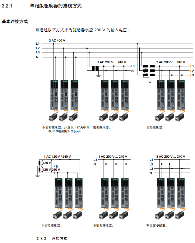 Power wiring: single-phase version is connected to L1/N, three-phase version is connected to L1/L2/L3, and a fuse (30A J level) is required.