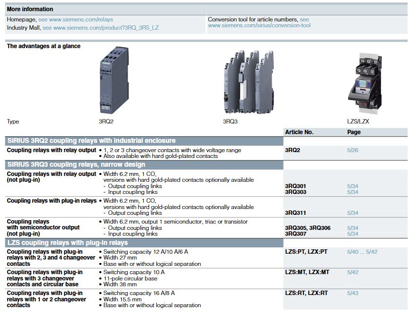Coupling relays mainly achieve electrical isolation and signal level matching between control circuits and load circuits. The document covers three major series: 3RQ2, 3RQ3, and LZS/LZX, corresponding to "industrial shell type, narrow design type, and plug-in customized type", meeting different installation spaces and customization requirements.