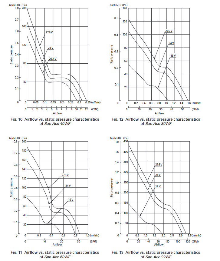 Note: Compared with the test data based on 24VDC rated voltage, the new model has higher static pressure in most airflow ranges and lower power consumption than the previous generation.