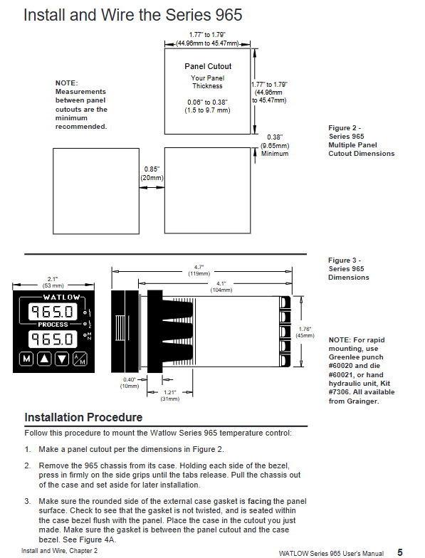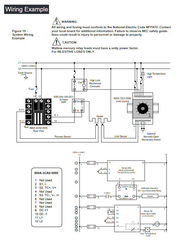 Output wiring: Inductive loads (such as relay coils) need to be paired with RC suppressors (Watlow part number 0804-0147-0000) to avoid electromagnetic interference causing equipment damage.
