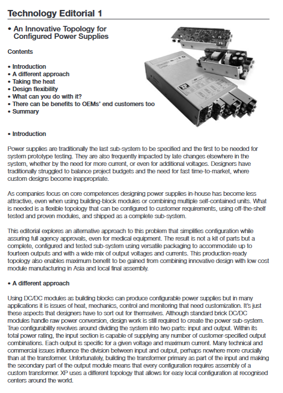 Compact and flexible power supply: Fractional Turn Transformer (FTT), reduces cross regulation, supports 3.3-60VDC output
