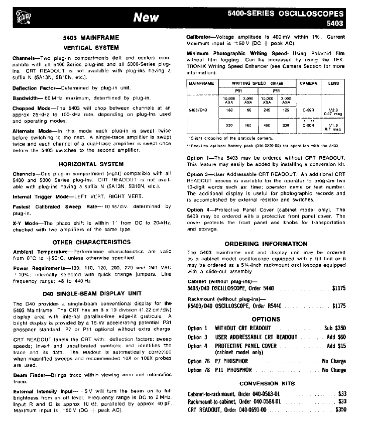 Tektronix 5400 Series Oscilloscope: Classic Integration of Plug in Architecture and CRT Reading Technology
