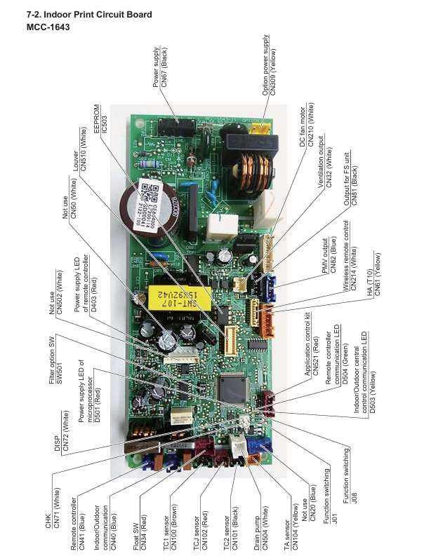 Outdoor unit fault codes: including communication faults (E06: indoor unit disconnection, E23: outdoor outdoor communication interruption), abnormal pressure/temperature (P03: high exhaust temperature, P20: high pressure protection activated), compressor faults (H01: compressor overcurrent, H02: compressor lock), which need to be checked in conjunction with the 7-segment display on the external unit interface board and manual steps.