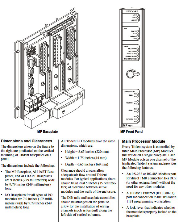 Communication interface: RS-232/485 Modbus port, 10BaseT Ethernet port (connected to TriStation 1131)