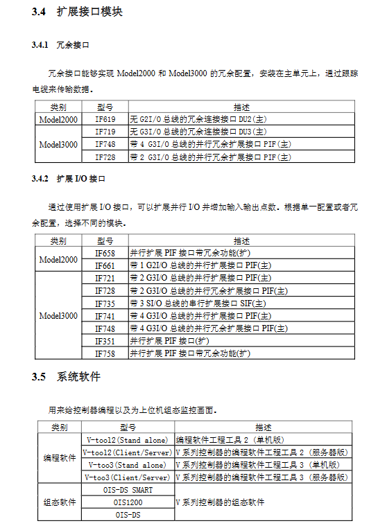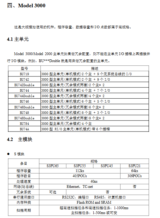 Model 3000 (large) 2-8 main slots+3-9 I/O slots Parallel bus (G3Bus), serial bus Each parallel bus extends 7 I/O units Support redundant configuration, suitable for large factory control