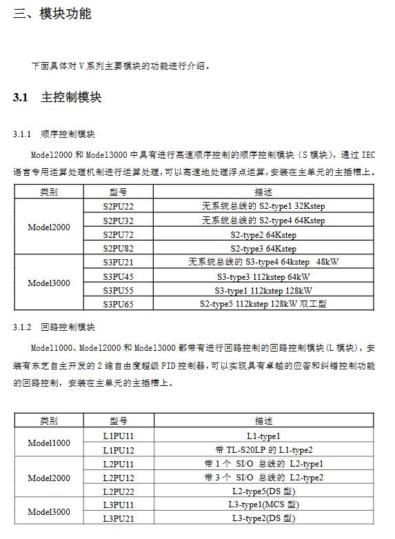 S module (sequential control) high-speed sequential control, floating-point operation processing Model 2000/3000 Model 3000 maximum 112kstep program capacity, 40ns processing speed