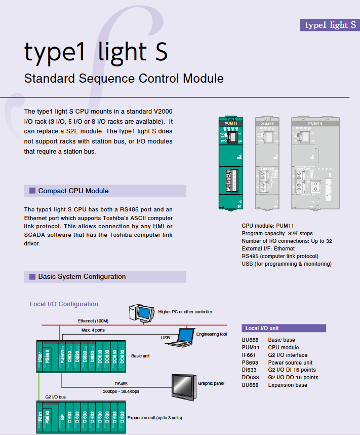 Type1 light S (standard type) 32K steps, 32 points, no single machine compact type, supports G2 I/O, RS485+Ethernet interface HPUM11 * * S