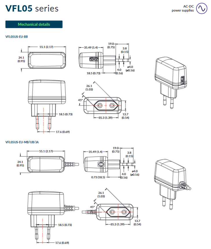 EU VFL05US050-EU-MB 5.0V 1000mA Mini USB B ±5% 74%