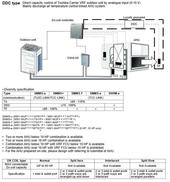 Applicable system: Can connect SMMS-u/∞/e/7 and SHRM-e series VRF outdoor units, requiring on-site preparation of AHU and DX COIL (direct expansion coil)