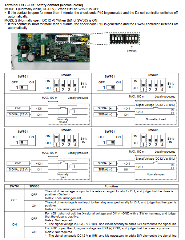 P10 safety contact disconnection inspection DI1 terminal connection