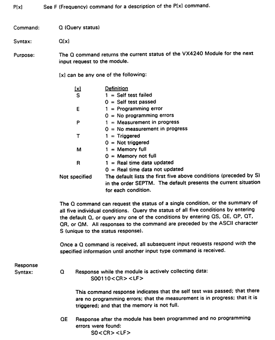 Send Q command to query module status (self-test results, sampling progress, trigger status, etc.).