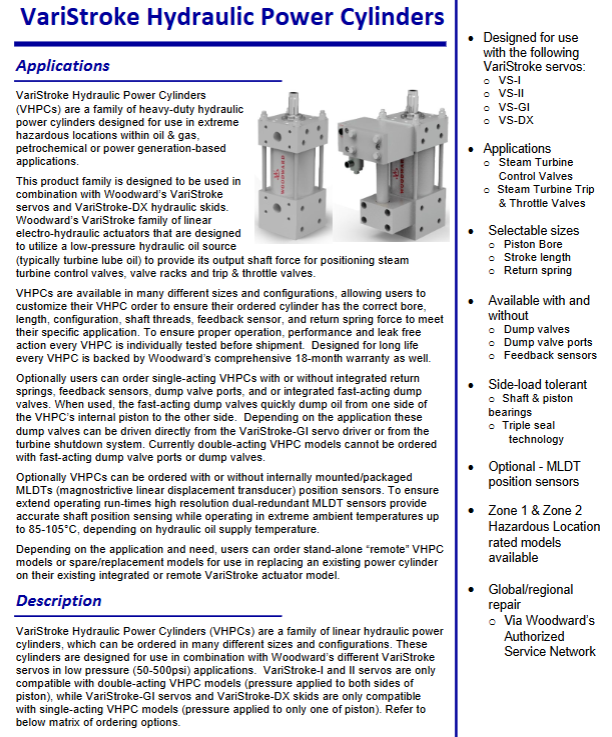 The core positioning is a heavy-duty hydraulic power cylinder designed specifically for extremely hazardous environments, compatible with Woodward VariStroke series servo valves/slide tables, used for steam turbine valve control