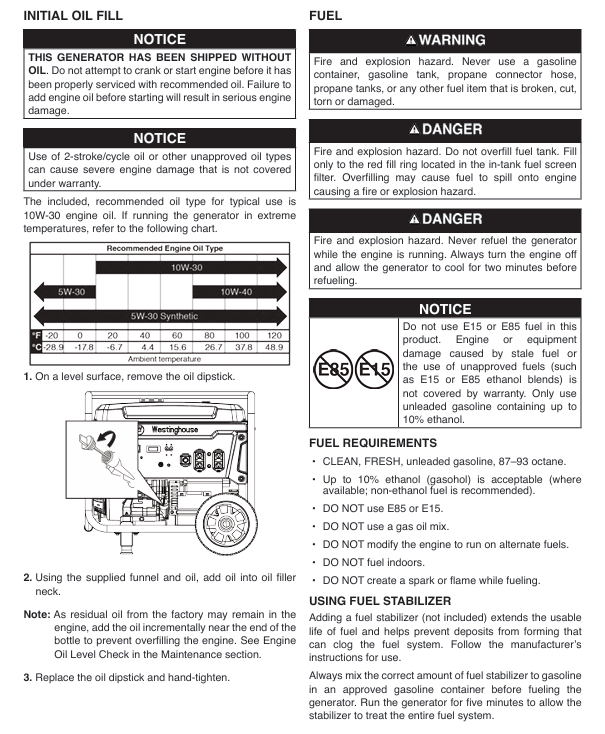 Do not operate after fatigue, drinking alcohol, or taking medication. Children and pets should stay away from running generators (at least 3 meters away).