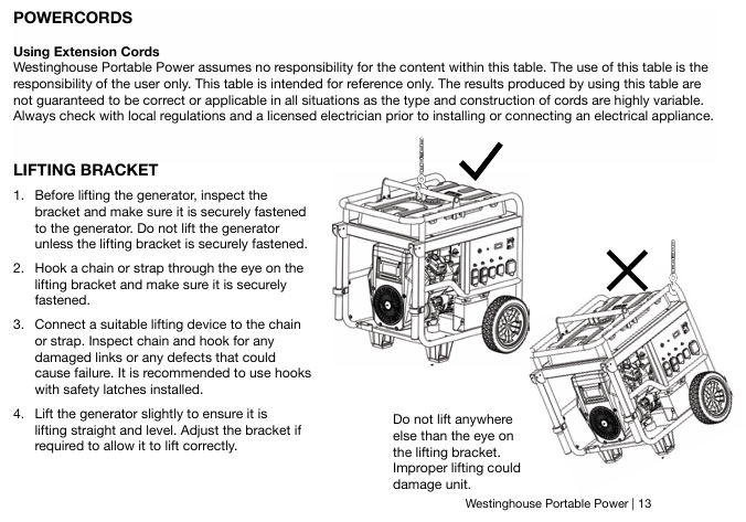 Backlash start 1. Same as 1-3 above; 2. Slowly pull the rope until the resistance increases, and quickly pull it upwards away from the generator. When only the WPro8500 battery runs out of power/disconnects, manually turn on the choke and turn it off after starting