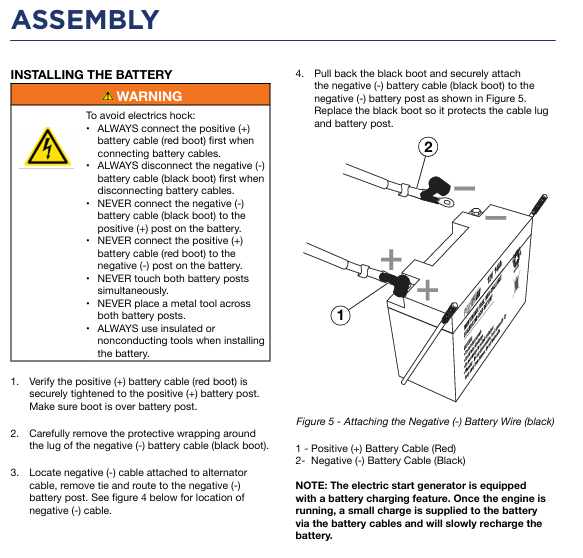 Confirm that the positive (red) cable is securely fastened to the positive pole of the battery and covered with a protective cover;