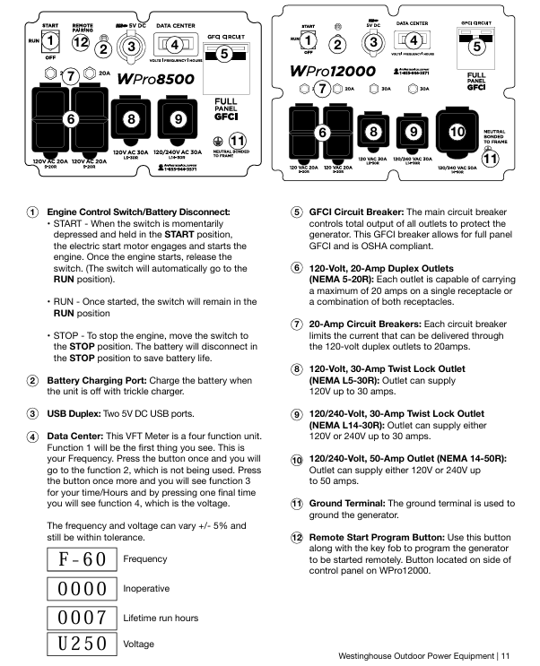 This document is the official user manual for Westinghouse's two portable generators (WPro8500, WPro12000), covering the entire process from safe operation to maintenance troubleshooting, as well as product registration, after-sales support and other service information. It emphasizes the "continuous product improvement policy" and reserves the right to modify specifications. Some images may vary due to model differences.