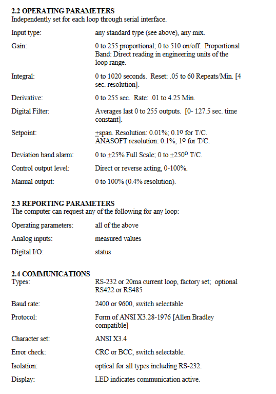 Communication interface: Supports RS-232 (up to 50 feet), RS-485 (up to 6000 feet), 20mA current loop (up to 5000 feet), and up to 16 devices can be networked.
