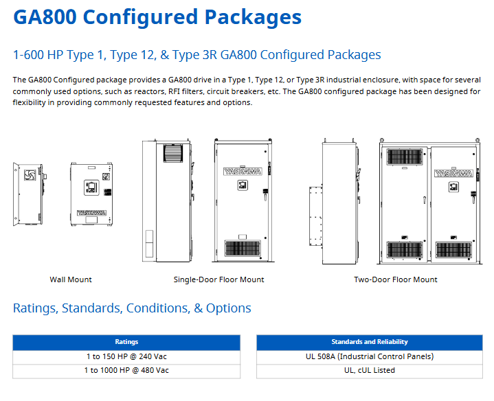 Question 3: What are the differences in protective features and installation requirements for Type 1, Type 12, and Type 3R enclosures in the GA800 configuration package? How to choose the appropriate configuration package for outdoor pump stations?